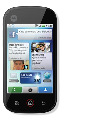 Gente a Motorola esta lançando uma nova linha de celulares com a nova tecnologia do blur. BLUR é uma tecnologia que permite que a qualquer momento que esteja conectado a um ponto de acesso a internet seu celular atualize suas mensagens de e-mail, seu orkut, seu twiter e etc, tudo isso atravez do preenchimento do login e a senha de cada um no celular, estas informaçoes iram aparecer em formato de widgets na tela principal do celular, por enquanto o que se sabe é que isso so vai funcionar nos celulares que possuem o sistema operacional Android.